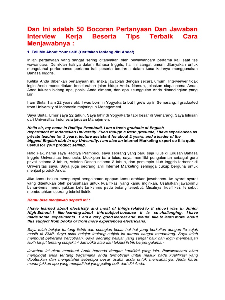 Interview Kerja Bahasa Inggris Contoh Pertanyaan Dan Jawabannya from visitpare.com Check spelling or type a new query. Maybe you would like to learn more about one of these? We did not find results for: